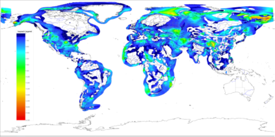 Cambrian to Pleistocene Thousands of metres N/A Much wider and thicker than Holocene layers